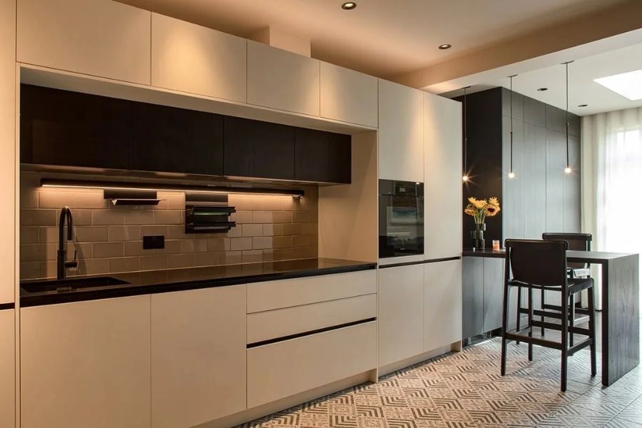 The inclusion of smart lighting such as the under-cabinet and in-drawer lights as well as ambient roof lights enhances your visibility during kitchen functions. Smart lighting not only increases visibility, but also improves the inviting environment of your kitchen. In addition, smart lighting enhances the latest kitchen furniture design of your kitchen, making it more functional and attractive at night.